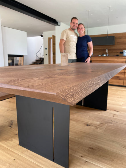 "Wir haben unseren Esstisch hier gekauft und sind rundum glücklich!Vom ersten Kontakt, über die Planung, die Fertigung und zuletzt die Auslieferung waren wir sehr zufrieden! Wir fühlten uns immer verstanden und in unseren individuellen Wünschen wahrgenommen."